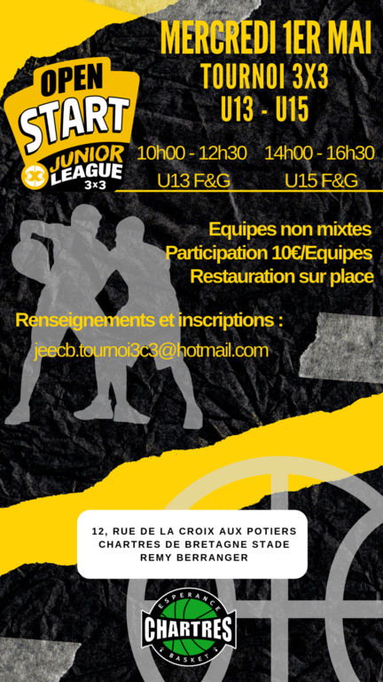 Mercredi 1er Mai sera organisé un Tournoi de Basket-Ball de 3x3 à Chartres de Bretagne.